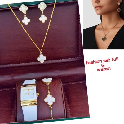 💎اطقم اكسسوار شيك جدا من اربع قطع ساعة -اسورة- وسلسال-حلق متوفر ب خمسة الوان السعر 10