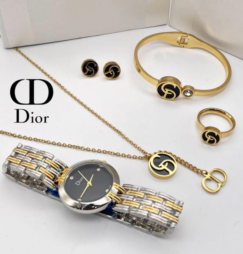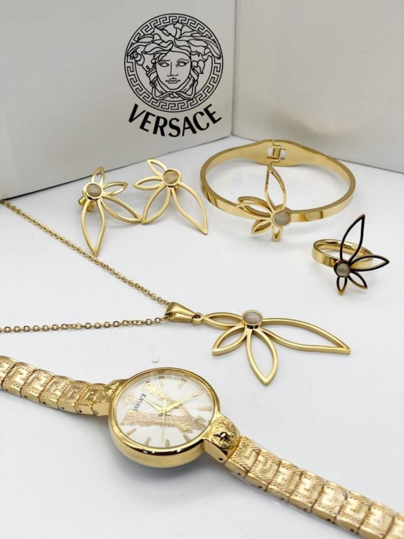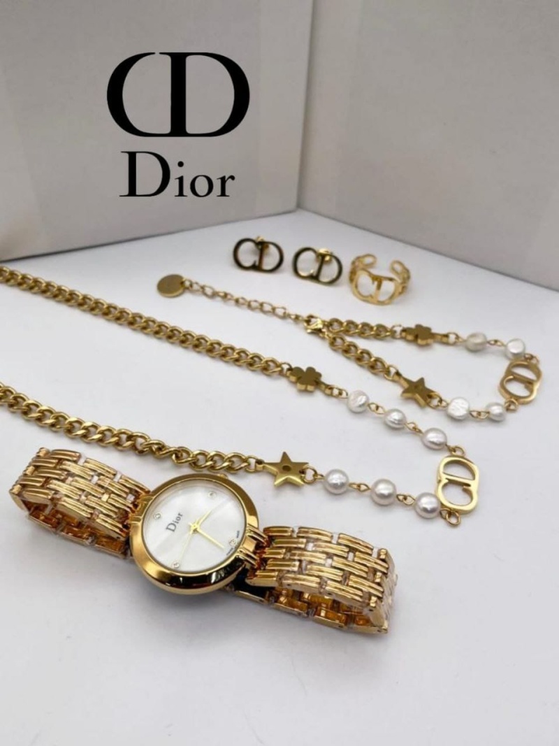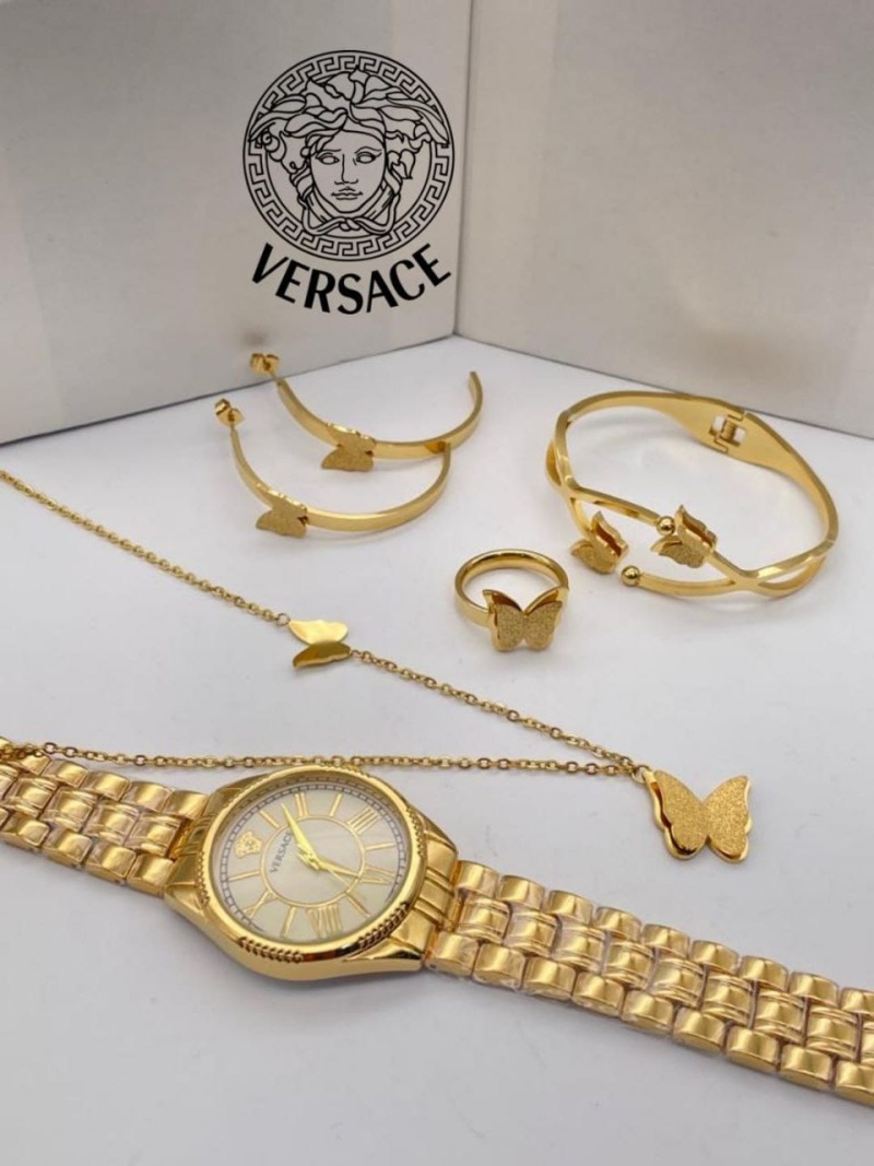 💎اطقم اكسسوار شيك جدا من اربع قطع ساعة -اسورة- وسلسال-حلق متوفر ب خمسة الوان السعر 10