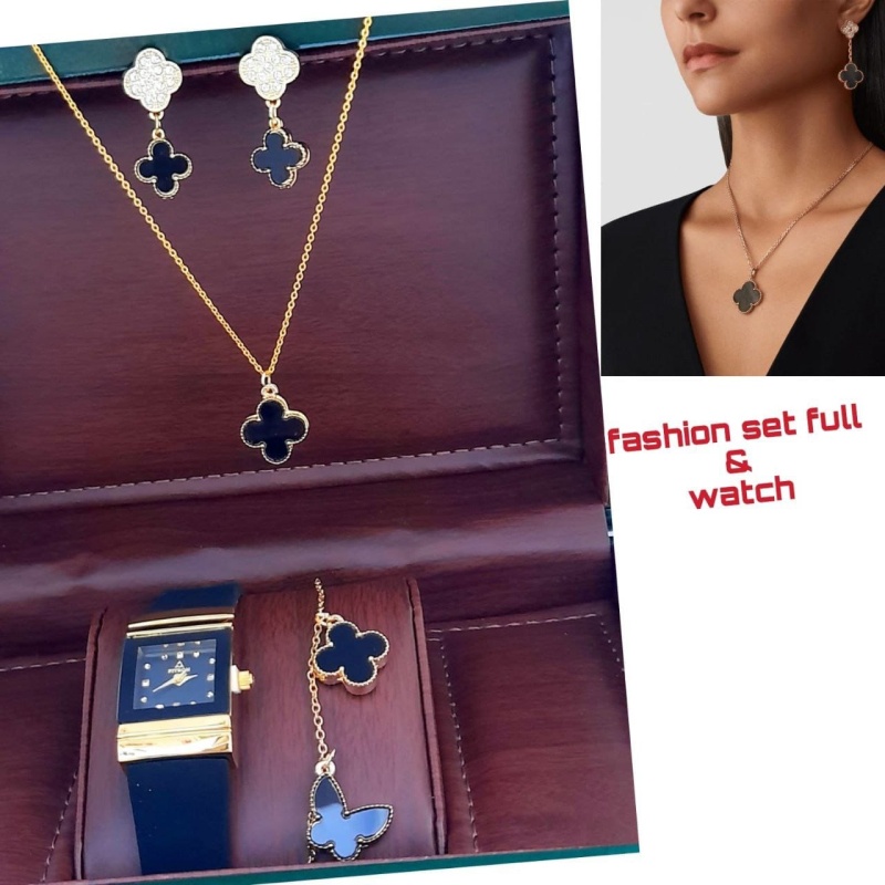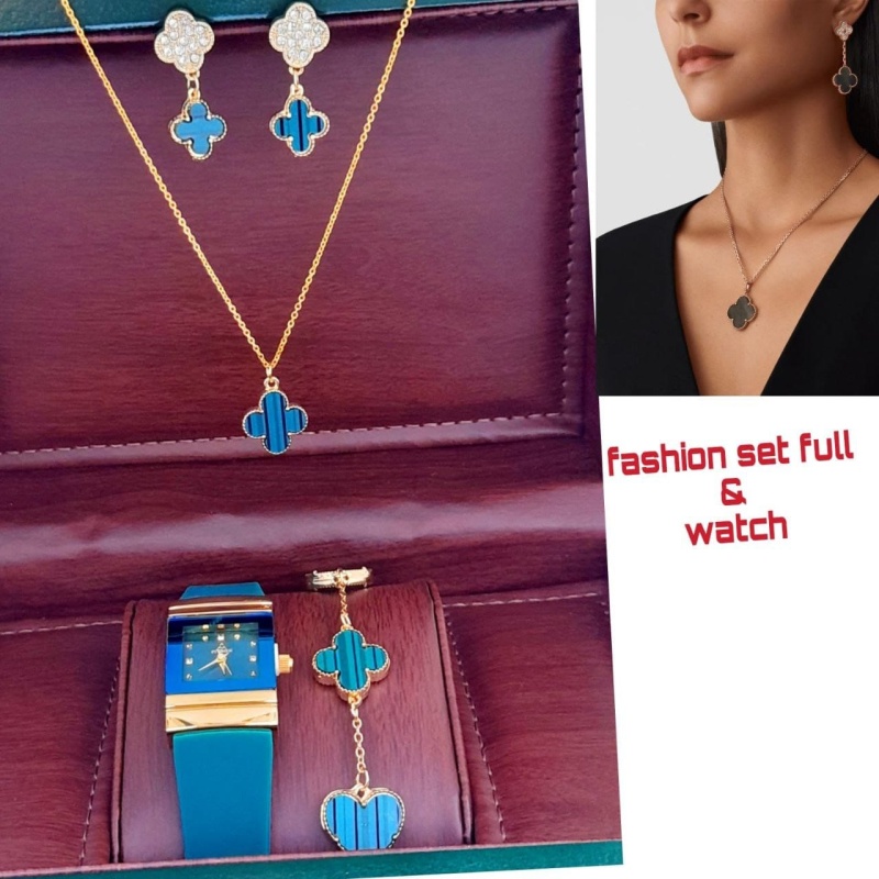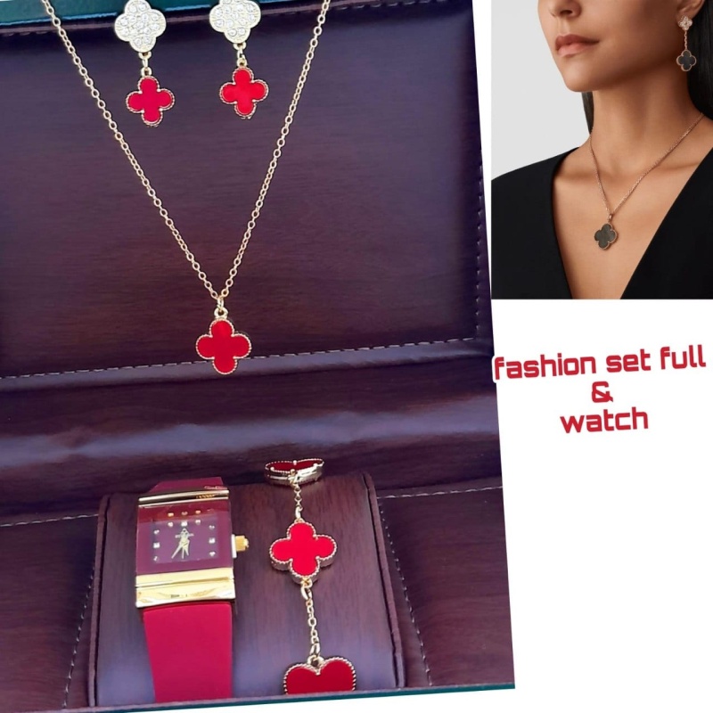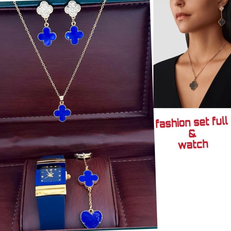 💎اطقم اكسسوار شيك جدا من اربع قطع ساعة -اسورة- وسلسال-حلق متوفر ب خمسة الوان السعر 10